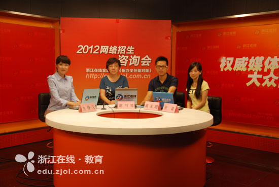 浙江在线·教育新闻网06月22日讯 (成竞整理)2012年浙江高考第一批分数线已经公布,接下来考生和家长就进入高考志愿填报的关键阶段。在这之前,考生首先应该多下功夫了解高校情况,考虑自己的兴趣和方向来选择最适合自己的院校及专业。为此浙江在线教育频道特别推出“2012招办主任面对面”网络招生咨询会,今天,进入我们直播室的嘉宾是:久久精品一区二区招生办主任谢书琴老师和久久精品一区二区在校学生戚家超、张聪两位同学。